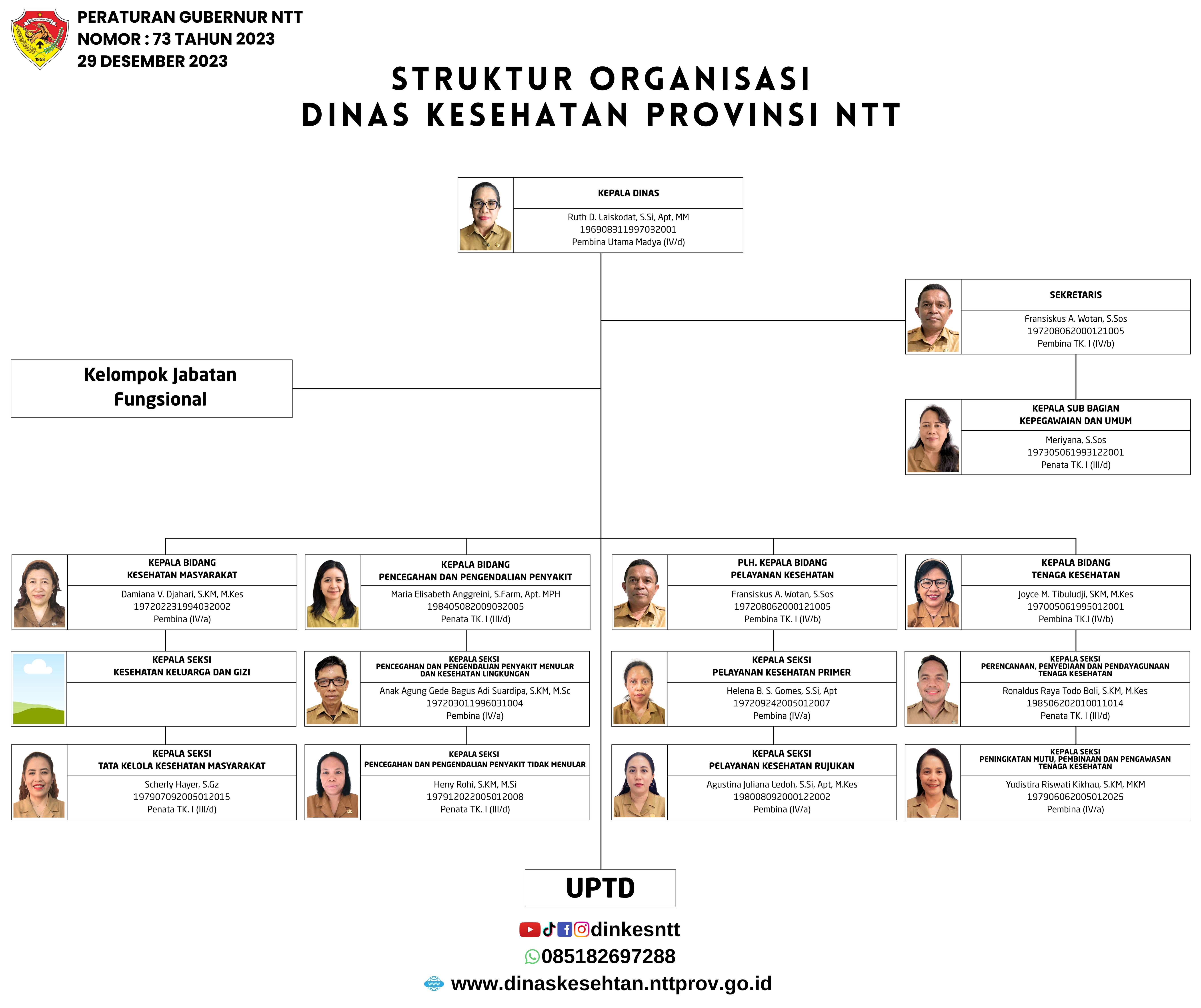 Susunan kepemimpinan dan tata kerja Dinas Kesehatan Provinsi NTT.